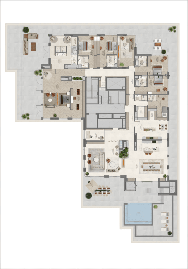 اختبر أسلوب حياةٍ لا مثيل له في أحضان حديقة ياس الخضراء، ضمن واحدة من ثلاث وحدات بنتهاوس فقط على طابق كامل في سما ياس، مشروع الدار السكني الفاخر والمميز. على مساحة 13,670 قدمًا مربعًا من التصميم المتقن، تكشف الرؤية المعمارية لوودز باجوت عن خمس غرف نوم، ومطبخ من تصميم الشيف إيزو، وشرفات واسعة تُطل على مناظر الحديقة، وحمام سباحة إنفينيتي خاص، يمكن الوصول إليه جميعًا عبر مصعد خاص لكبار الشخصيات. تشمل التشطيبات الفاخرة التي أبدعها إتساسو بارتولومي يارزا، رخامًا إيطاليًا فاخرًا وأرضيات باركيه خشبية هندسية، بينما تضمن إمكانية تخصيص الخيارات أن يعكس كل مسكن الشخصية الفريدة لمالكه. بُني هذا المشروع على أسس الاستدامة، فسيعيش السكان حياة فاخرة مع تقليل تأثيرهم على البيئة.