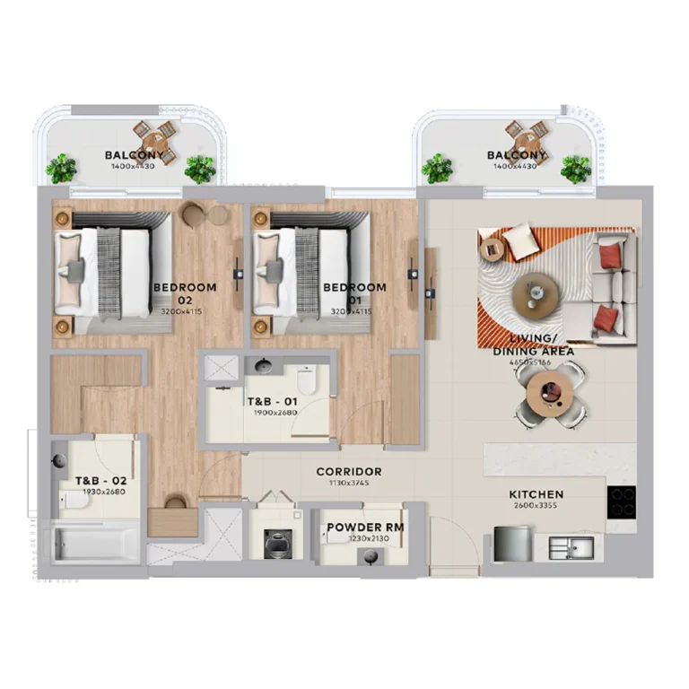 يضم المجتمع 678 وحدة سكنية موزعة على 3 مبانٍ تشمل استوديوهات، وشققًا من غرفة إلى 3 غرف نوم (بخيارات مع غرفة خادمة)، بأسعار تبدأ من 980 ألف درهم إماراتي.
