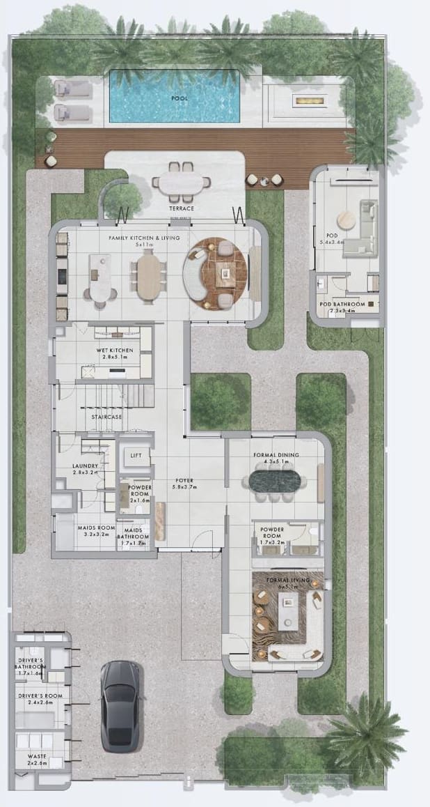 يقع المشروع في موقع متميز في جزيرة ياس ، وهي مركز الترفيه في أبو ظبي. يستغرق وقت السفر إلى حلبة مرسى ياس وعالم فيراري أبوظبي وياس ووتروورلد أبوظبي حوالي 10-15 دقيقة بالسيارة من المساكن.