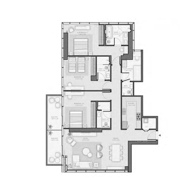 يحتوي كل مسكن على شرفة خاصة تتيح للسكان الاستمتاع بإطلالات على الحديقة الخضراء ومناظر المدينة النابضة بالحياة. ولمزيد من الراحة، تشتمل الشقق الدوبلكس والشقق المكونة من 3 غرف نوم ومساكن مختارة مكونة من غرفتي نوم على أماكن مخصصة للموظفين. علاوةً على ذلك، تم تجهيز جميع المطابخ بعناية فائقة بأجهزة فاخرة بما في ذلك المواقد وغسالات الأطباق.