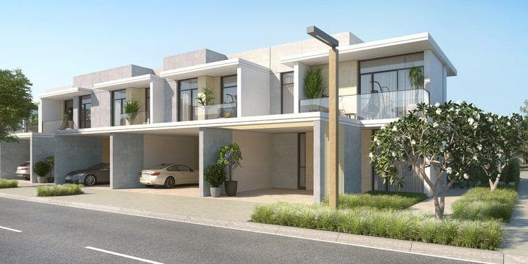 Ruba features contemporary villas and townhouses with three and four-bedroom floor plans. Units range in size from 1,564 sq. ft. (145 sq. m.) to 2,700 sq. ft. (251 sq. m.). Townhouses range in price from AED 1,440,000 (USD 392,000) to AED 2,450,000 (USD 667,000), and villas range in price from AED 1,600,000 (USD 435,600) to AED 2,700,000 (USD 735,000).