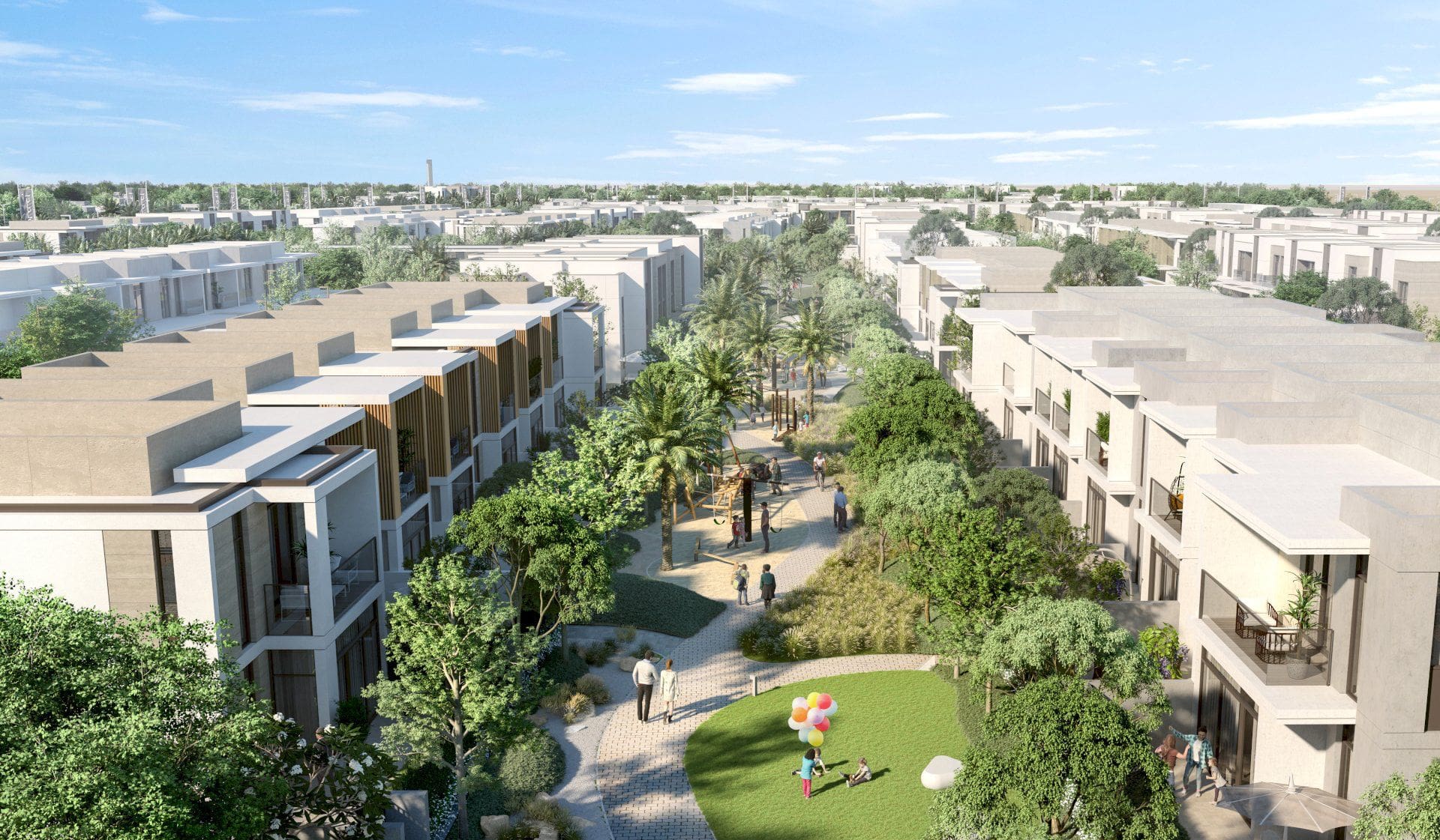 Sun features three to four-bedroom villas and townhouses ranging in size from 1,384 sq. ft. (128 sq. m.) to 2,654 sq. ft. (246 sq. m.). Townhouses range in price from AED 1,410,000 (USD 384,000) to AED 2,300,000 (USD 632,000), and villas range in price from AED 1,450,000 (USD 395,000) to AED 3,200,000 (USD 871,200).