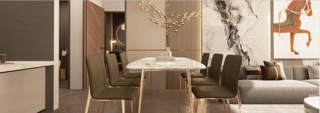 Gardenia Livings is a seven-story residential complex located in the Arjan district of Dubai. The construction of the building began in 2018, and the complex is expected to be commissioned in 2023. The project is developed by Safe Builders & Developers. Properties include one- to two-bedroom apartments that are available to buy. The developer offers 26 different configurations. Residences were designed with minimalist modern finishes. Apartments feature spacious living rooms, bathrooms that are adjacent to the bedrooms, partially equipped kitchens, and balconies that overlook the surrounding area.