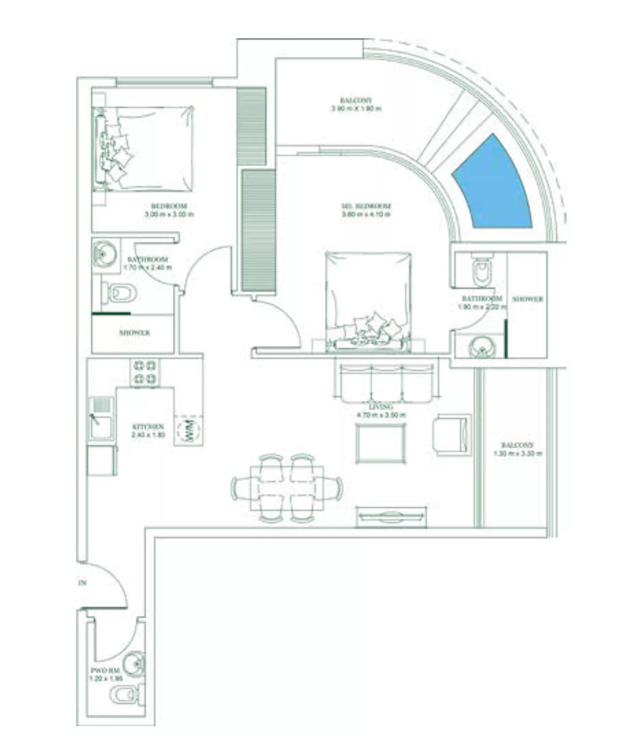 The size of the units ranges from 376 sq. ft to 3,005 sq. ft and the layouts include balconies which overlook the surrounding leafy areas. There is also a private swimming pool and a study available in a number of select 2 and 3-bedroom apartments.