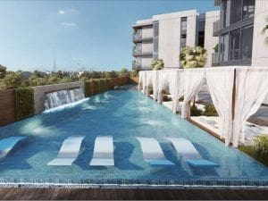 Q Garden Apartments is a multifunctional complex located in Arjan, Dubai. The project was developed by AYS Developers. The development consists of several five-story buildings, of which four levels are reserved for residential use. There are commercial spaces situated on the ground floors. Residents can enjoy a patio with a swimming pool and relaxation area on the podium levels. Properties include studios and one-to two-bedroom apartments that are available to buy and rent.