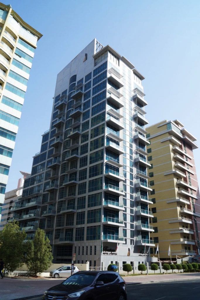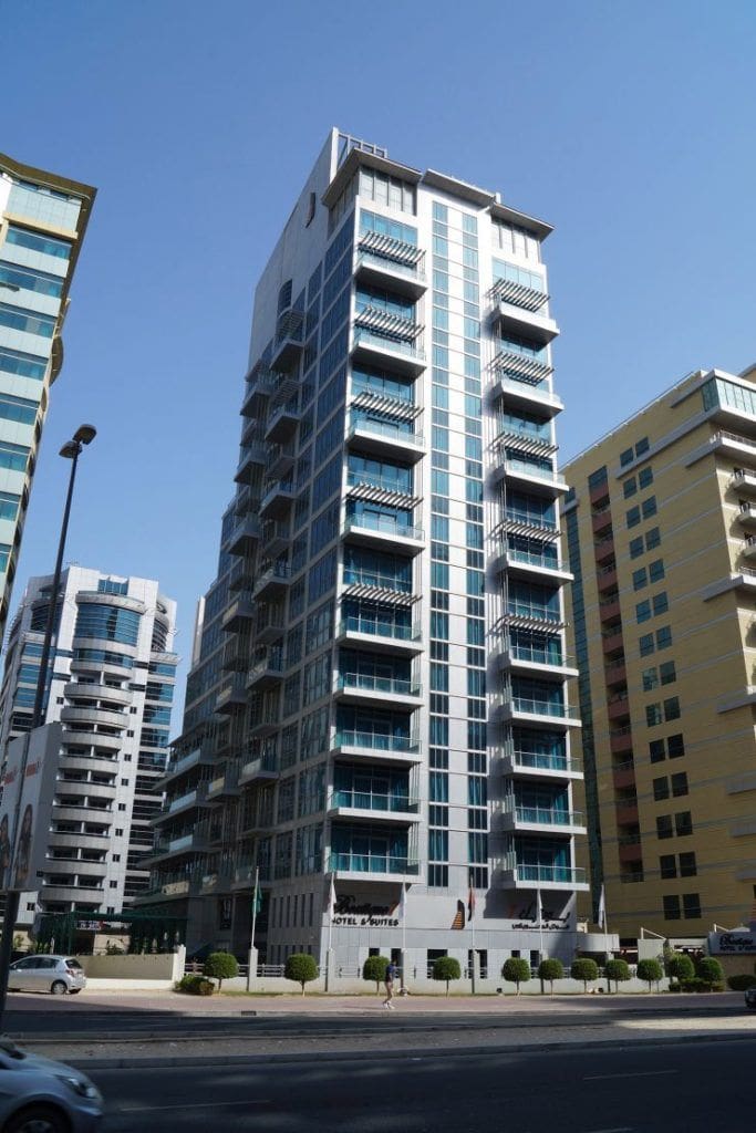 Boutique 7 Hotel Apartments is a 15-storey mixed-use tower with hotel suites, apartments, and retail stores located in Barsha Heights, Dubai.