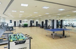 Employees have access to a fitness club and treadmills to promote a healthy lifestyle, which has also been shown to increase productivity at work.