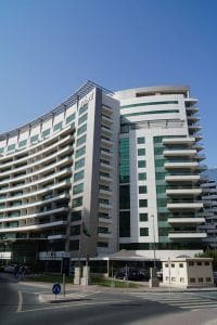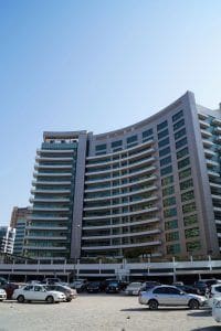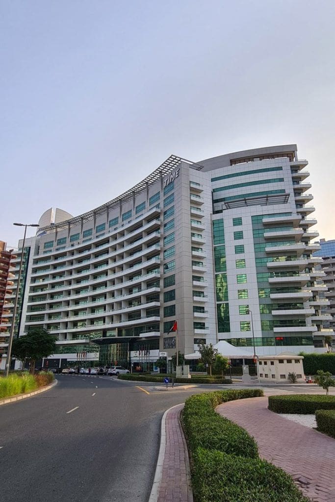 Time Oak Hotel and Suites is a residential complex located in Barsha Heights, Dubai. The building has a unique architectural design that features a modern Arabic style.