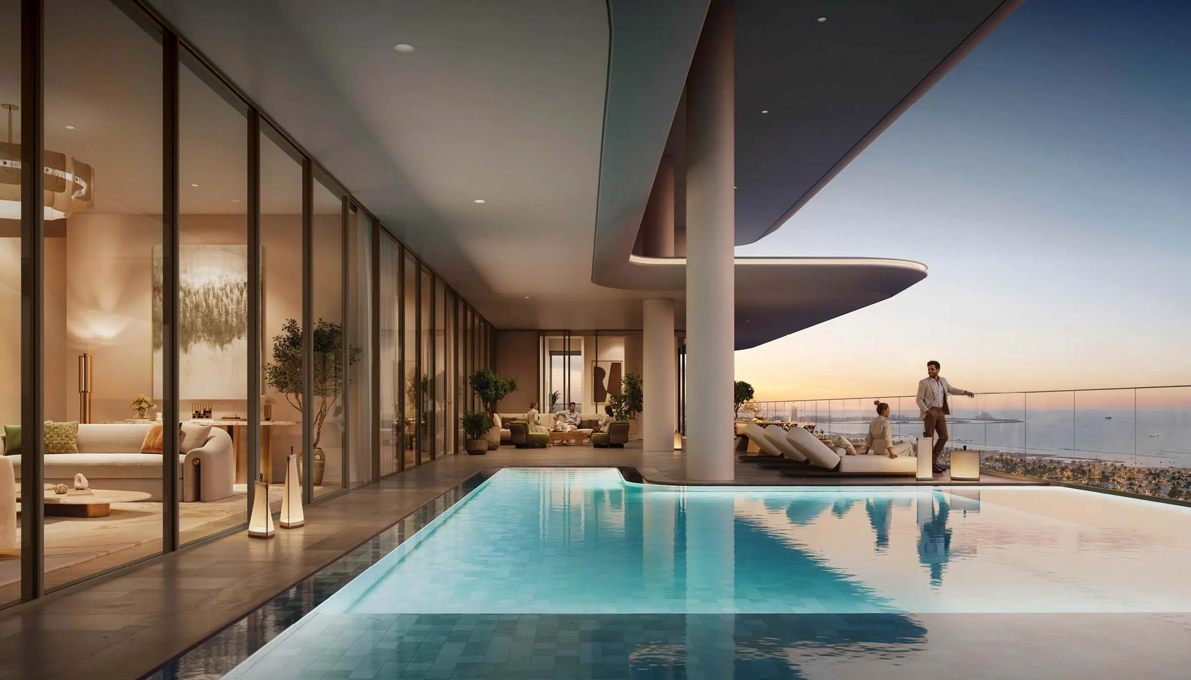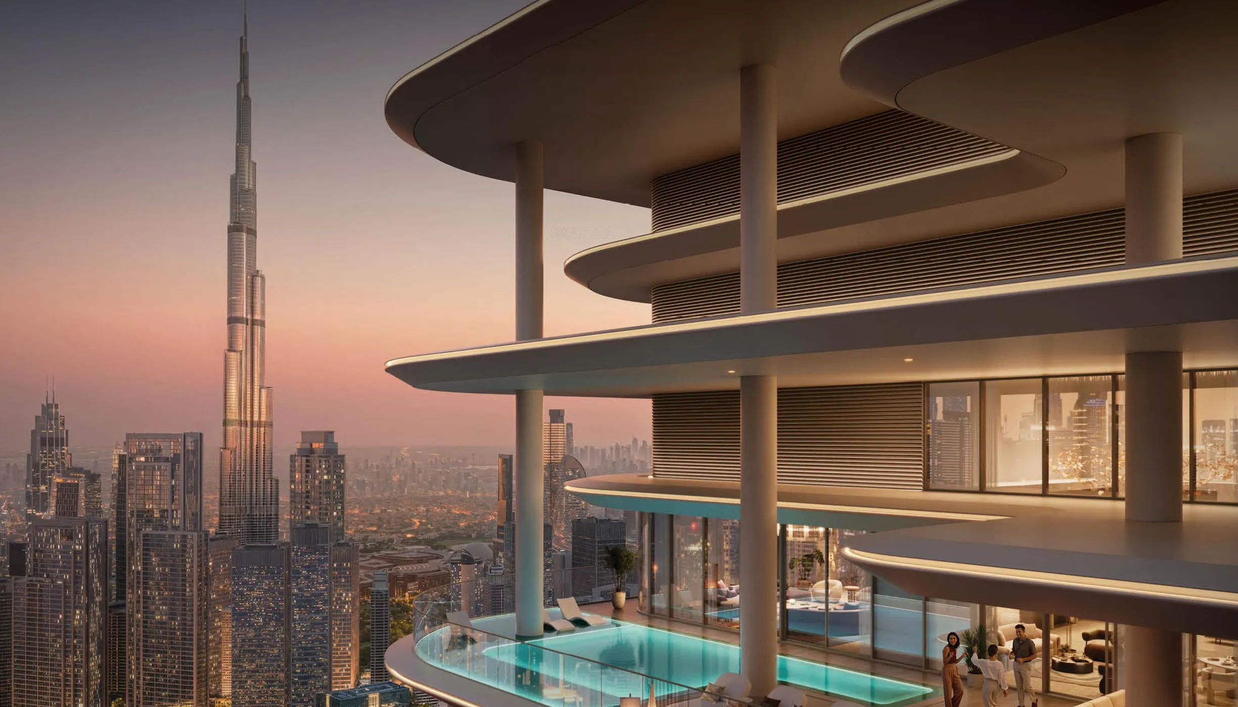 The project features 1–4 bedroom luxury apartments. All units offer contemporary architecture, expansive glass façades, and balconies framing panoramic views of the sea, Burj Khalifa, Downtown Dubai, and Business Bay. Size range: approx. 789 sq.ft to 4,226 sq.ft.