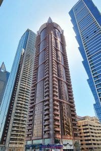 Escape Tower is an apartment complex by United Engineering Construction located in Dubai’s central Business Bay district. The 40-storey skyscraper, which was completed in 2006, is located near the main street of the city, Sheikh Zayed Road The real estate collection of the complex includes apartments with 2 and 3 bedrooms. All residential properties have balconies, equipped kitchens and fitted bathrooms. The two-bedroom residences range in size from 48 square meters (517 square feet) to 149 square meters (1,604 square feet), and the 3-bedroom apartments range in size from 172 to 223 square meters (1,851 to 2,400 square feet).
