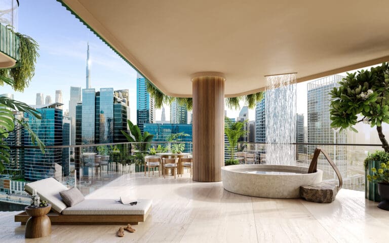 It offers an unparalleled wellness-focused lifestyle with private services, green spaces, and community amenities in Business Bay.