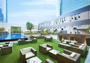 The Cosmopolitan, also known as Damac Maison Cour Jardin, is a 19-storey residential complex located in Business Bay, Dubai. The project was developed by DAMAC Properties and was completed in 2014. There are a total of 335 modern residential units, including fully furnished studios and one- to three-bedroom apartments. Properties include balconies and panoramic windows with beautiful views of the Dubai Creek Canal. Apartments range in size from 374 sq. ft. to 1,619 sq. ft.