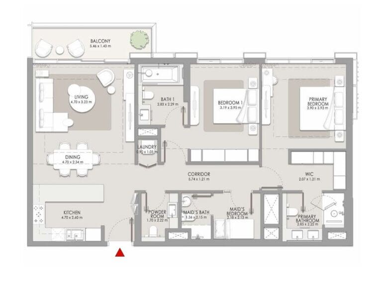 2 bedroom + maid Apartment