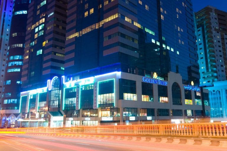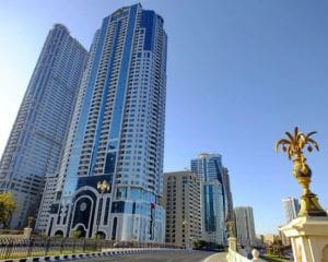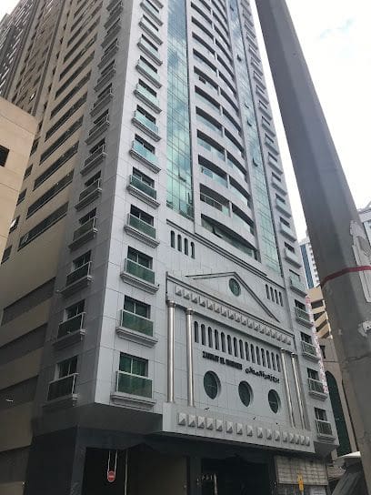 Latifa Tower is an apartment complex located on Corniche Street. It was built next to Al Nakheel Oasis Park. The building overlooks Khalid Lagoon and Al Noor Island. Properties include serviced apartments, and units feature staff accommodations, terraces, and enclosed kitchens. The building provides a selection of amenities, including a swimming pool, sauna, Jacuzzi, and gym. Furnished three-bedroom apartments have an annual rental rate of AED 80,000 (USD 22,000).