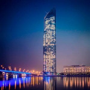 D1 Tower is an 80-storey residential complex located in the Culture Village district of Dubai. The building has a height of 932 ft. (284 m) and was commissioned in 2015. The project was developed by Dubai Properties Group and Emirates Sunland Group, and the architectural design was implemented by Holford Associates. The tower consists of 528 residential units including studios, one- to five-bedroom apartments, and seven-bedroom penthouses. There is a multi-level car park within the complex with reserved parking for property owners and tenants, and additional visitor parking is available at the Festival City Lake Car Park.
