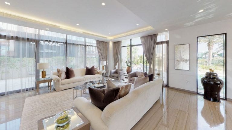 The investment cost for studios and apartments range from AED 340,000 to AED 2,300,000. Investors can also choose from a selection of villas with three to six bedrooms. The initial purchase cost for a villa starts at AED 1,200,000. Prospective buyers can also purchase move-in-ready townhouses, which were built in clusters and have the option to come fully furnished. The initial cost of a townhouse is approximately AED 1,400,000, while a larger five-bedroom townhouse with an area of 316 sq.m. starts at AED 3,500,000.