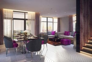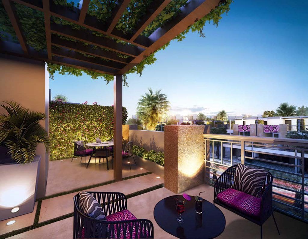 Developed by Arabtec Construction, Aquilegia is a residential community located in Damac Hills 2. The development consists exclusively of three-bedroom villas. Construction began in early 2019 and was completed in late 2020. Aquilegia’s villas provide access to onsite amenities, such as a barbecue area, private Jacuzzi, children’s play area, and golf course, as well as rooftop facilities and terraces. The complex also offers 24-hour video surveillance, a centralised cooling system, and two parking spaces per unit. Living space ranges in size from 1,208 sq. ft. (112 sq. m.) to 2,772 sq. ft. (257 sq. m.).