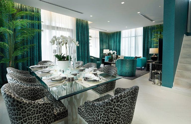 Just Cavalli Villas offers villas with three- and four-bedroom floor plans. Units range in size from 2,099 sq. ft (195 sq. m) to 3,042 sq. ft (282 sq. m), and purchase prices start at AED 1,591,000 (USD 433,000).