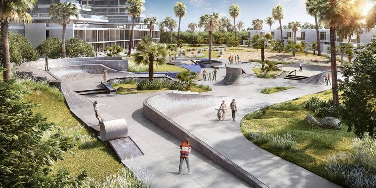 Damac Hills also features the man-made Malibu Bay beach, which opened its popular wave pool in November 2020. The size of the pool is 2,295 sq.m., which is almost 1.5 times larger than a professional ice hockey rink. The waves are created using a huge ball that rolls back and forth within an enclosed space located at the centre of the pool.