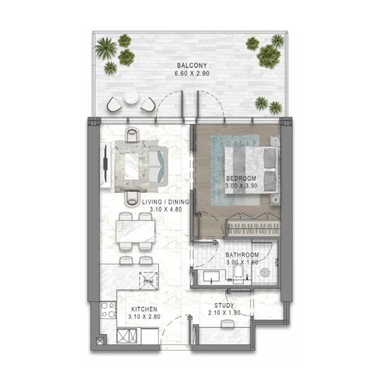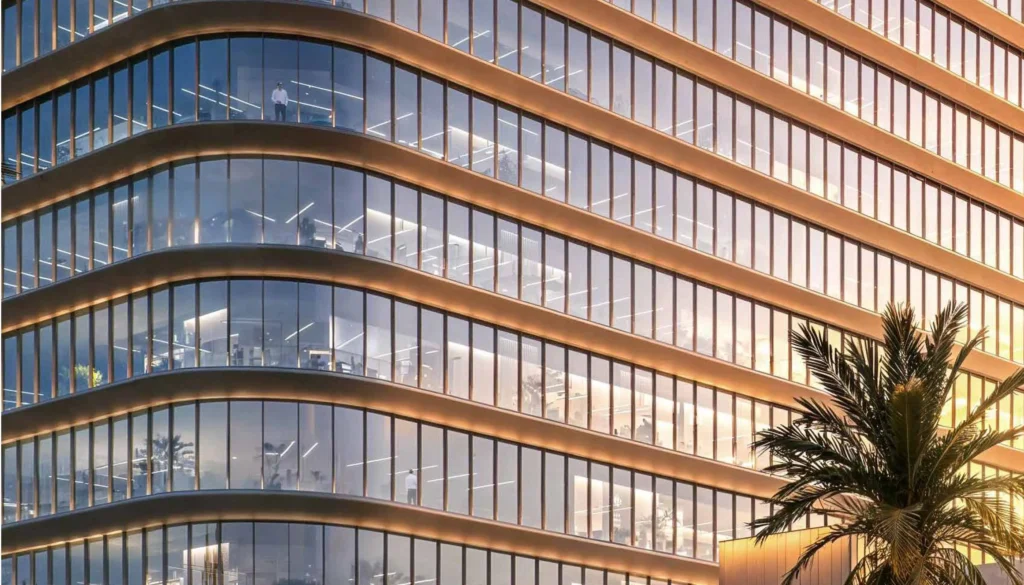 Prices start from approximately AED 1.1M (USD 300K) for 1BR apartments and AED 1.7M (USD 463K) for 2BR units. Office spaces start from AED 6.1M (USD 1.66M), depending on layout and view.