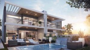 Green Acres is a residential community by the world-renowned developer DAMAC Properties. It is located in DAMAC Hills, an area known for being the home of the Trump International Golf Club. The community is surrounded by green parks and lakes. Green Acres offers individual villas overlooking a large tropical park. Properties feature spacious residences with three- and four-bedroom floor plans. Units have a minimum size of 171 sq. m (1,845 sq. ft), and the starting price for a villa is AED 1,660,000 (USD 451,951).