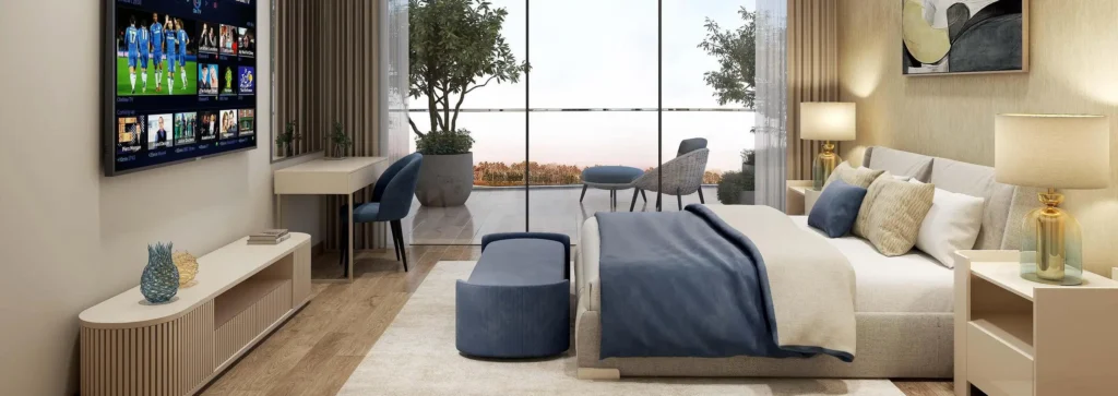 Valencia Apartments benefits from DAMAC Lagoons’ large-scale infrastructure, themed districts, and one of Dubai’s largest crystal-lagoon concepts.