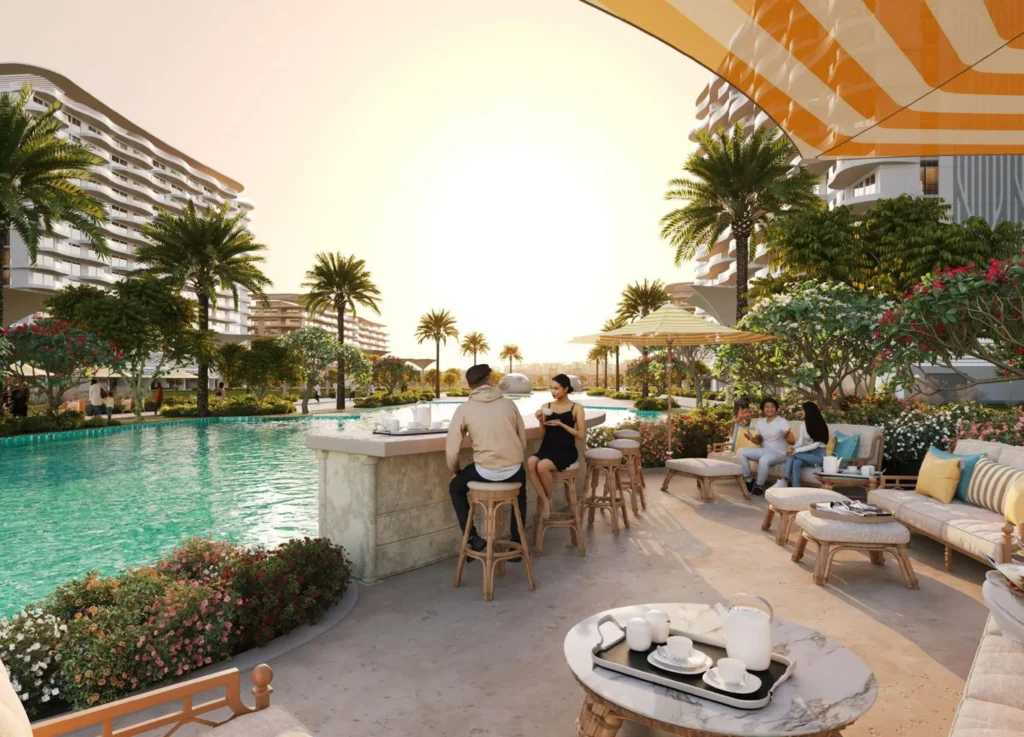 Residents enjoy a Mediterranean-themed lifestyle with lagoon views, water features, and a resort-style environment designed for both end users and investors seeking holiday-home appeal.