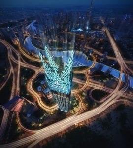 Die Burj Binghatti Jacob & Co Residences in der Business Bay sind ein sensationelles Projekt von Binghatti Developers in Zusammenarbeit mit der Luxusschmuck- und Uhrenmarke Jacob & Co. Der opulente 104-stöckige Hypertower soll den Rekord des höchsten Wohngebäudes der Welt brechen, den derzeit der Central Park Tower in New York mit seinen 472 m hält. Das exklusive Projekt für die Elite wird stilisierte Elemente aufweisen, die von der Uhren- und Designphilosophie von Jacob & Co inspiriert sind.