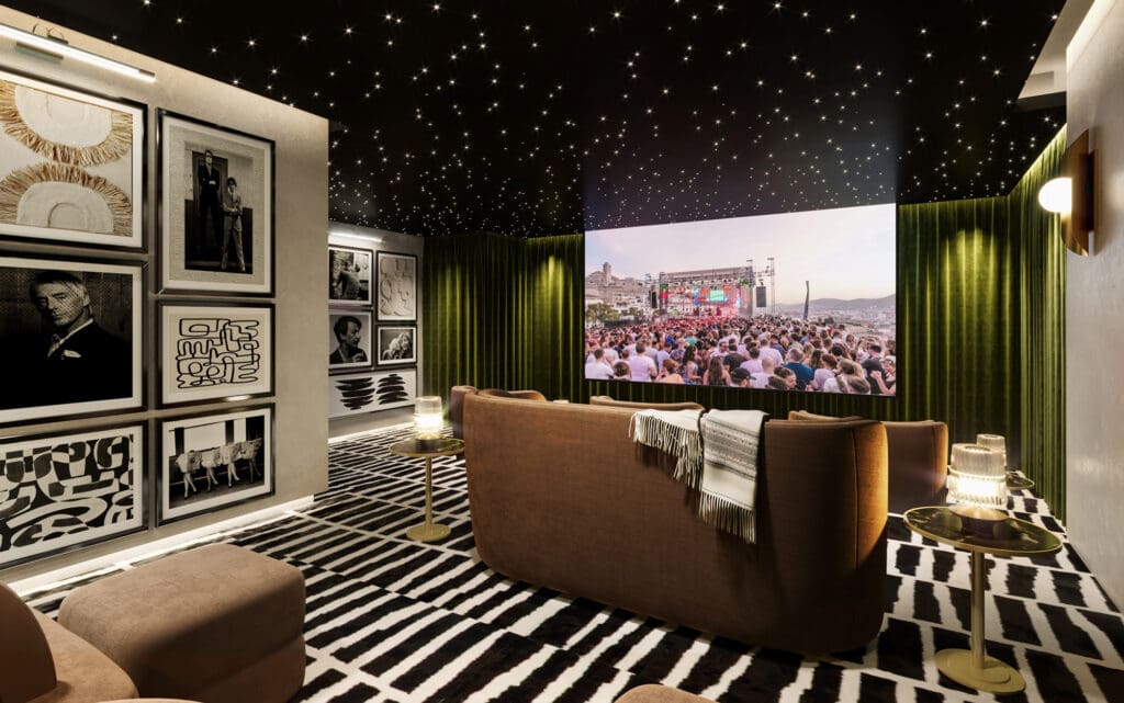 Im einzigartigen Open-Air-Kino der Hyde Residences können Sie Ihre Lieblingsfilme unter dem Sternenhimmel genießen. Die versenkte Lounge bietet einen intimen, gemütlichen Rahmen für Filmabende und fördert den Gemeinschaftssinn und den luxuriösen Lebensstil, für den Hyde bekannt ist.