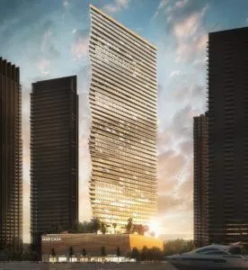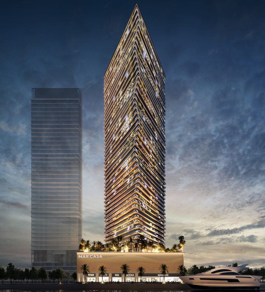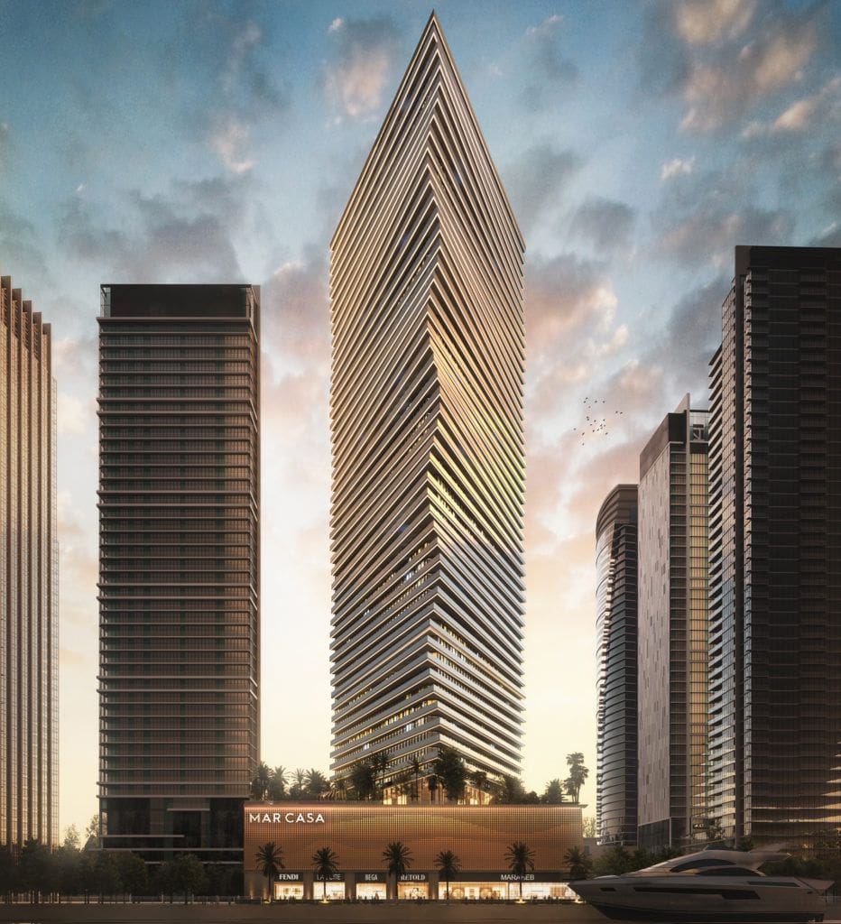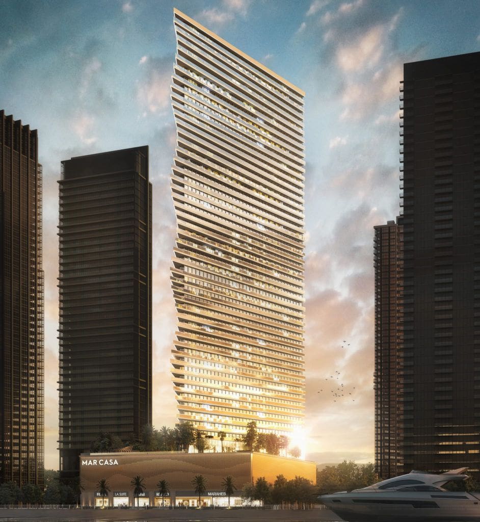 Das in Dubai Maritime City gelegene Mar Casa ist ein 52-stöckiger Turm von Deyaar mit einer von Meereswellen inspirierten Fassade.