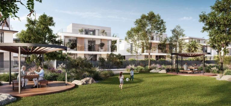 Diese hochwertigen Immobilien, die an eine Wüstenlandschaft erinnern, werden von üppigen Palmen und einem Ghaf-Wald umgeben sein. Gleichzeitig wird das Außenpanorama durch die Wüsten-Majlis und Lagerfeuer ergänzt.