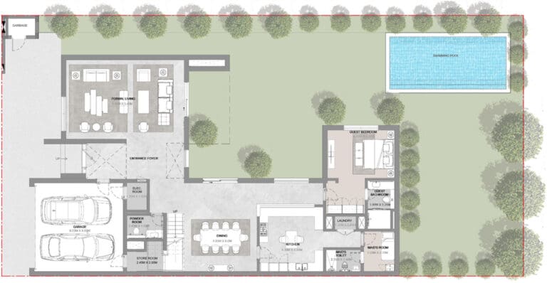 Gönnen Sie sich den Luxus Ihrer ganz persönlichen Oase mit einem privaten Swimmingpool, der zu jeder Villa gehört. Diese Pools eignen sich perfekt zum Entspannen, Trainieren oder für den Empfang von Gästen und bieten eine angenehme Abkühlung vom warmen Klima Dubais.