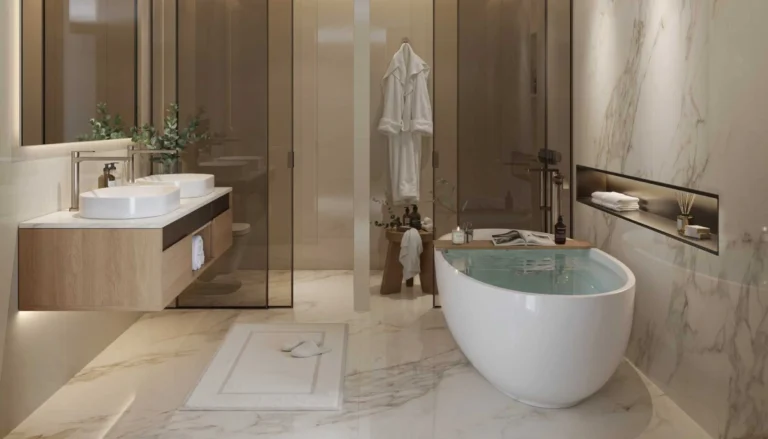 Exklusive Private-Dining-Bereiche, ein Panorama-Clubhouse und ein Wellness-Bereich im Beach-Style mit Salzräumen, Saunen, Dampfbädern und privaten Behandlungsräumen.