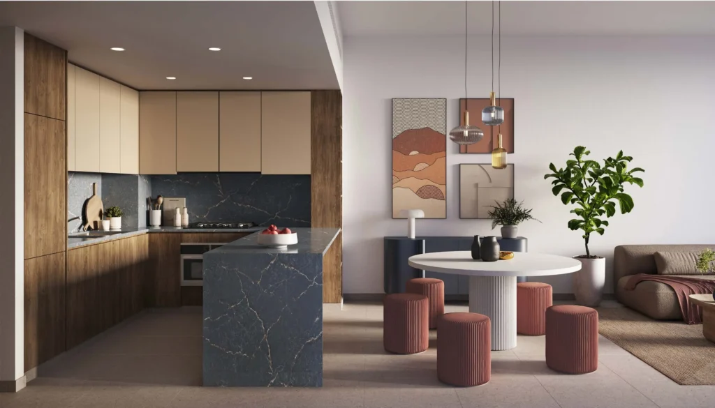 Die Preise beginnen bei 1,4 Mio. AED für ein 1-Zimmer-Apartment, steigen auf 2,7 Mio. AED für eine 2-Zimmer-Einheit und 4,8 Mio. AED für eine 3-Zimmer-Residenz. Gartenwohnungen starten bei 1,7 Mio. AED für 1-Zimmer, 3,0 Mio. AED für 2-Zimmer, während das größte 3-Zimmer-Duplex mit 5,7 Mio. AED bepreist ist.