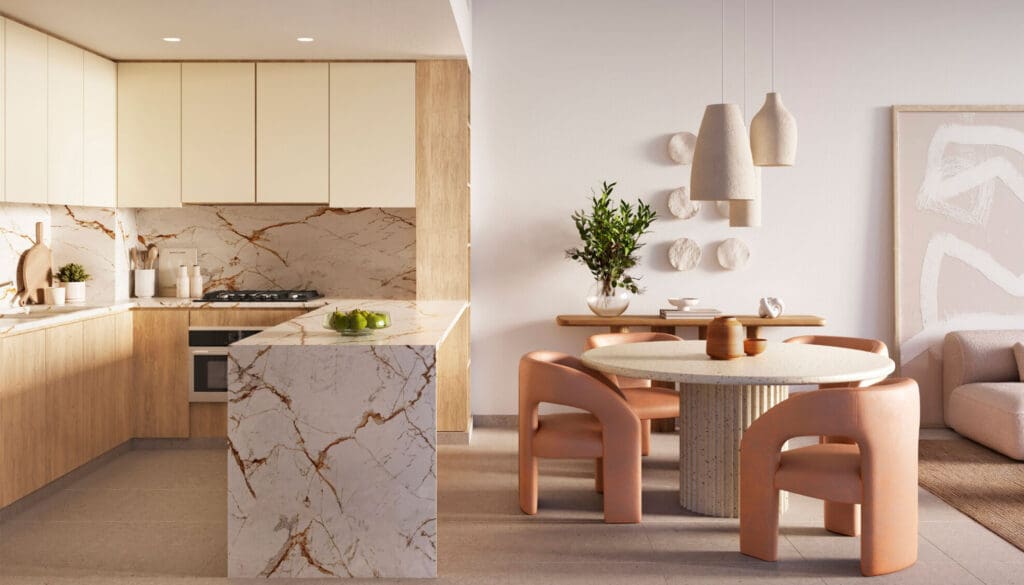 Das Projekt bietet 1–3-Schlafzimmer-Apartments, 1–2-Schlafzimmer-Gartenwohnungen und 3‑Schlafzimmer-Duplexe. Die Größen reichen von 804 bis 3.552 sq.ft.