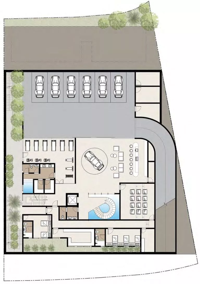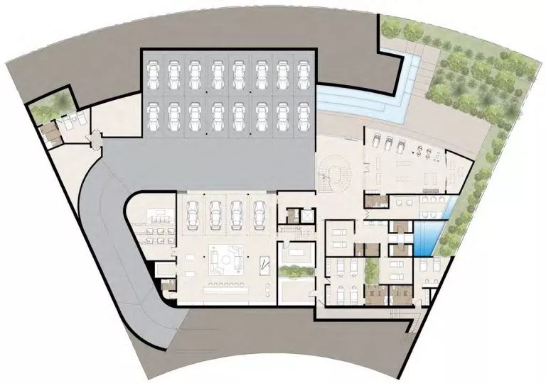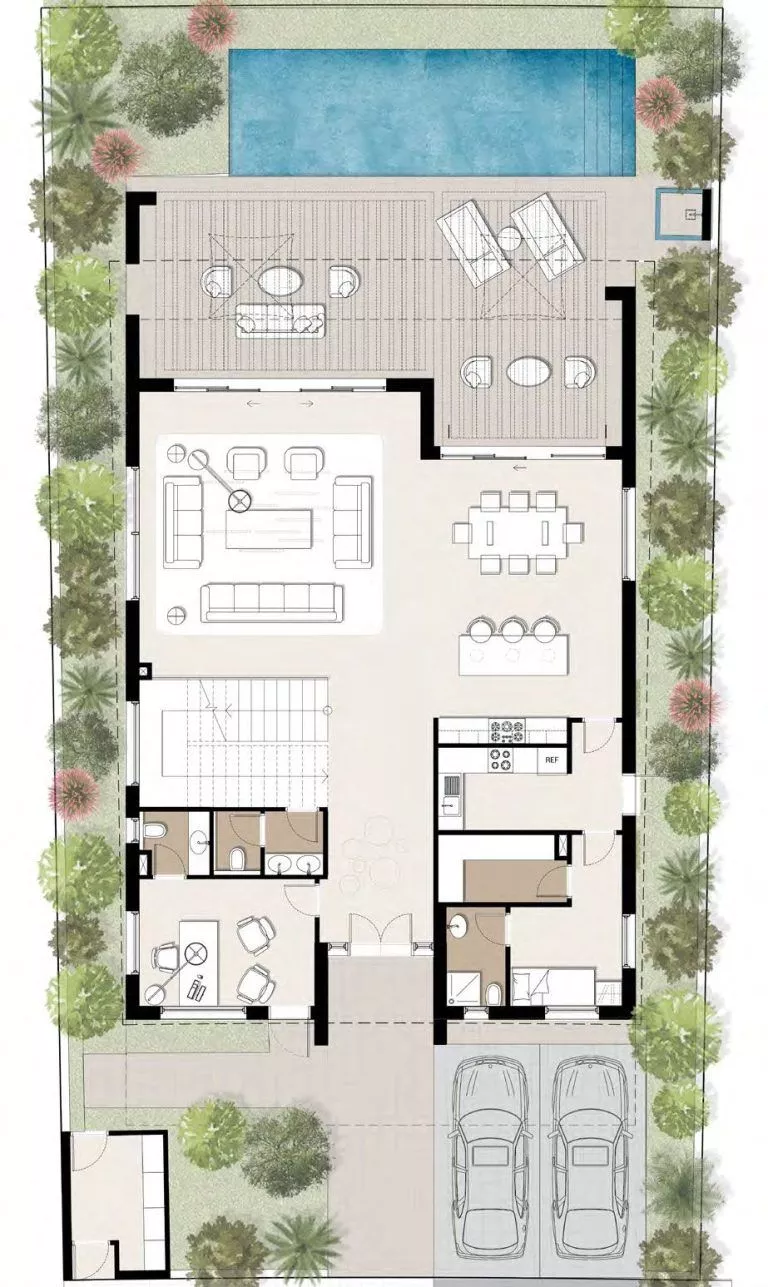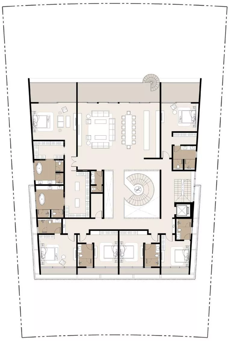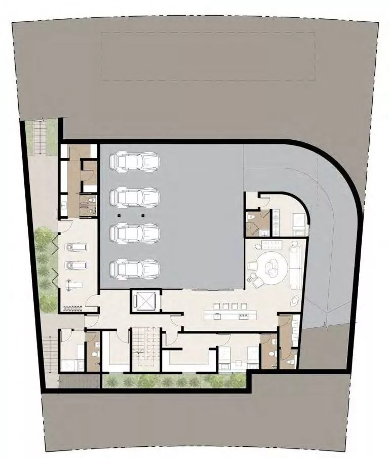 Dank der verschiedenen Grundrisse können Sie sich für ein eigenes Spa, eine Sauna, ein Kino, einen Fitnessraum, eine Bibliothek, eine Bar oder alles andere entscheiden, was Ihr Herz begehrt. Die originelle Architektur umfasst ein breites Dachfenster in der oberen Etage.