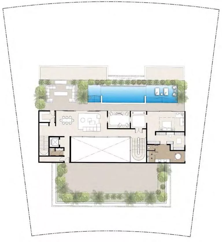 Ihr großzügiger Infinity-Pool mit Sonnenliegen befindet sich in der perfekten Lage, um die Sonnenuntergänge zu bewundern und den Blick auf den Horizont von Abu Dhabi zu genießen. Außerdem gibt es Loungebereiche im Außen- und Innenbereich, grüne Gärten und Zugang zu einem gepflegten Sandstrand. Auf dem Gelände der Insel finden die Bewohner folgende Einrichtungen:
