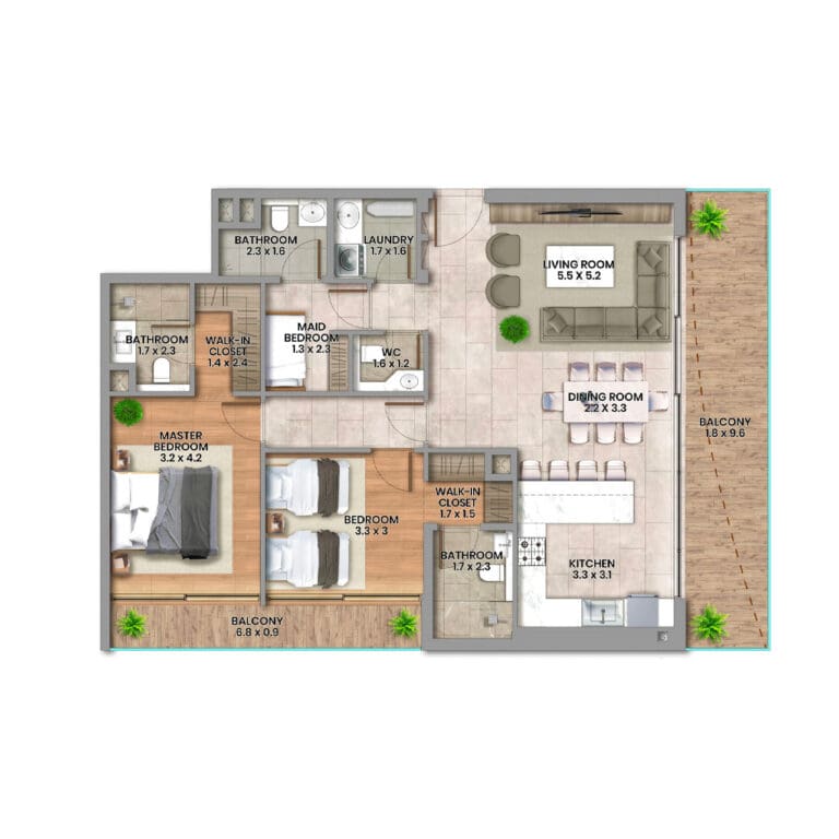 Die strategisch günstige Lage zwischen Al Satwa und der Sheikh Zayed Road bietet eine exzellente Anbindung an wesentliche Autobahnen und Sehenswürdigkeiten. Der internationale Flughafen von Dubai liegt nur 14 Minuten entfernt, während die beliebtesten Strände in 10-15 Minuten zu erreichen sind.