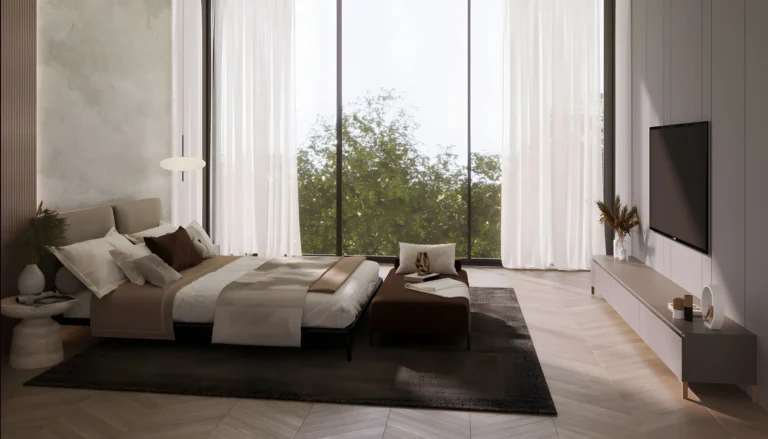 Die TH-P05-Townhouses verfügen über 6 Schlafzimmer, intelligent auf Wohnflächen von ca. 435 bis 442 m² verteilt. Die Suiteflächen reichen von ca. 382 m² (Mittelhäuser) bis ca. 387 m² (Eckhäuser). Jedes Haus ist auf ein nahtloses Indoor-Outdoor-Living ausgelegt – mit bodentiefen Fenstern, offenen Wohn- und Essbereichen, Familien- und Sky-Lounges, Schlafzimmern mit Bad en suite sowie ruhigen Gärten, die direkt in die grün gestaltete Umgebung übergehen.