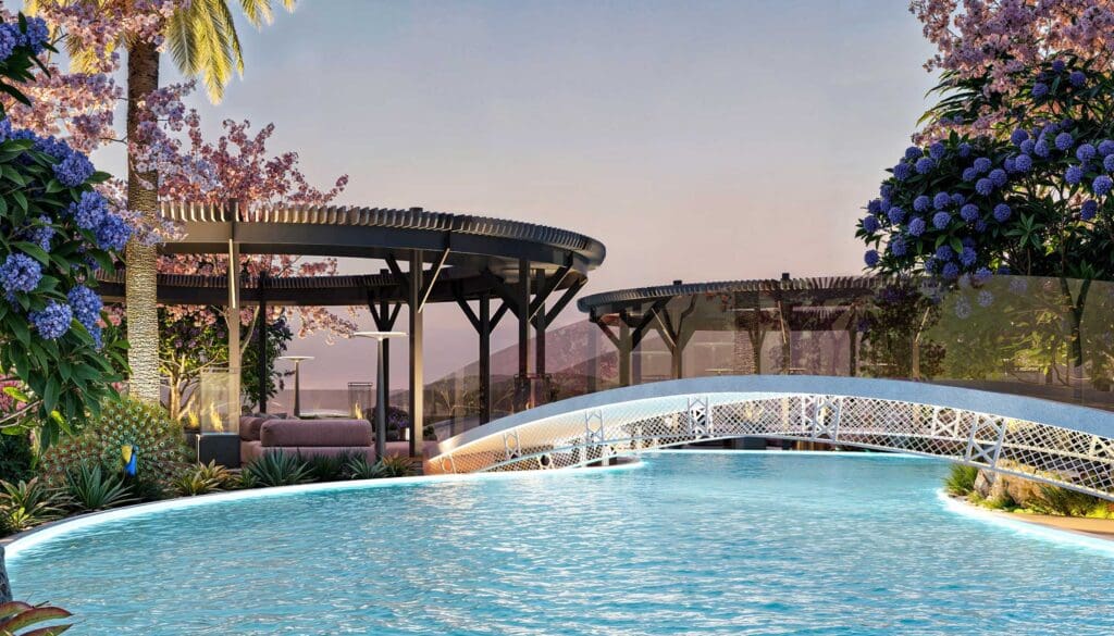 Genießen Sie Dubais höchstgelegten, sanft fließenden Rooftop-Stream – ein einzigartiges Wassererlebnis in ruhiger Atmosphäre.