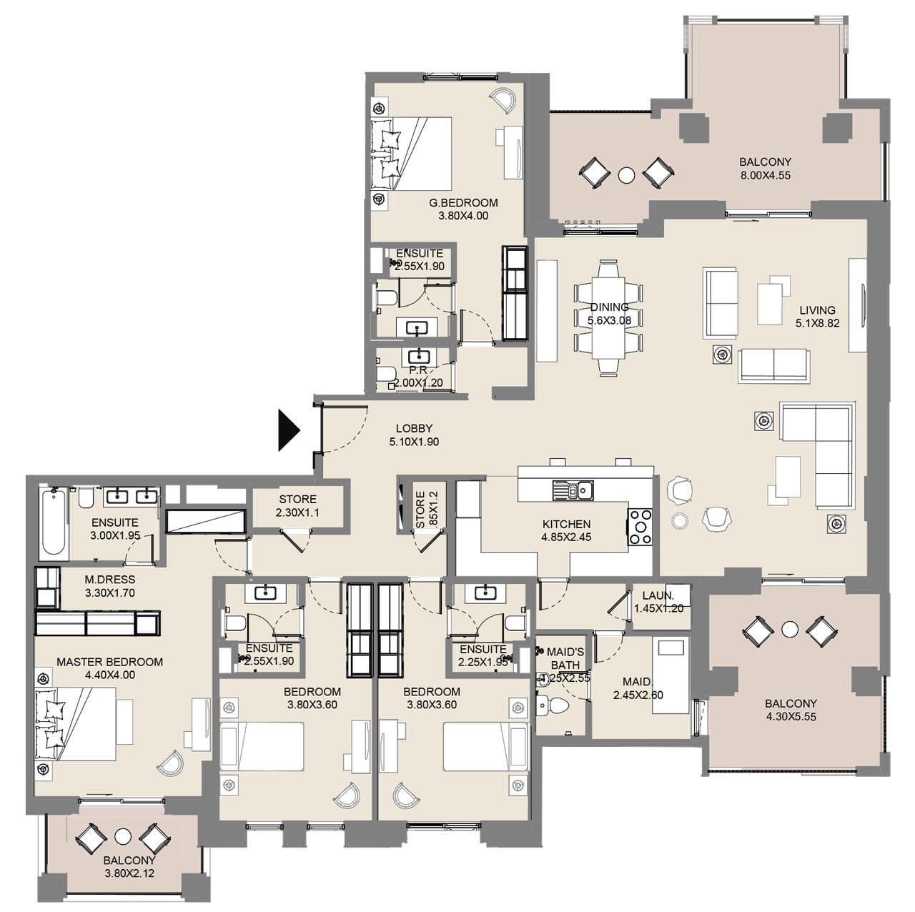 Die Wohnungen werden über private Balkone oder Terrassen verfügen, die einen Blick auf die grüne Nachbarschaft von MJL und das unschlagbare Burj Al Arab Hotel bieten. Gleichzeitig werden die Apartments mit 3 und 4 Schlafzimmern mit einem Zimmer für das Dienstmädchen ausgestattet sein, um den Bewohnern maximalen Komfort zu bieten.