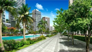 Die familienfreundliche Anlage integriert Spielplätze für Kinder und Jugendliche, begrünte Freizeitflächen sowie eine Event-Plaza – ein Masterplan, der Lebensqualität und Gemeinschaft in den Mittelpunkt stellt.
