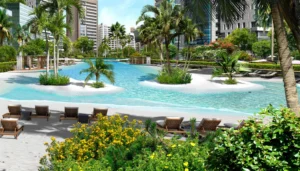 Meydan Horizon ist um eine vier Kilometer lange Uferpromenade angelegt, gesäumt von Restaurants, Cafés, Geschäften und Parks. Bewohner von Wynwood Horizon genießen direkten Zugang zu vier Lagunen mit feinsandigen Stränden und schattigen Cabanas.