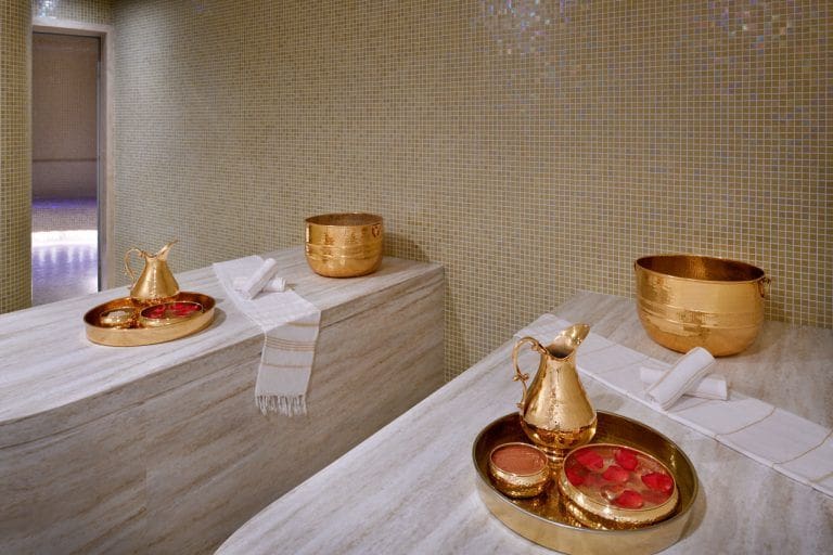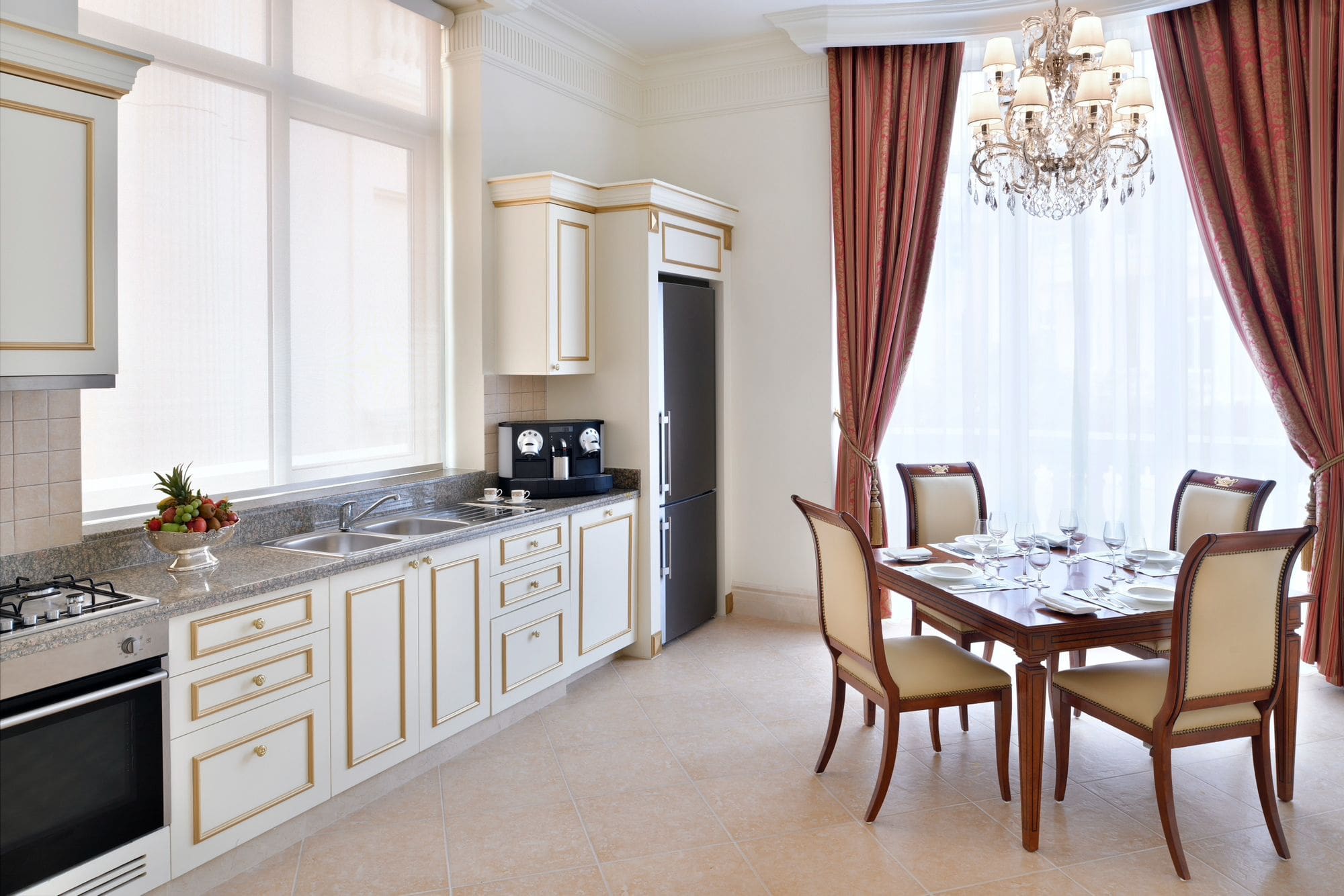 Die Villen im Raffles The Palm Dubai verfügen über wunderschön gestaltete Innenräume, die durch handgefertigte Möbel von Francesco Molon, Teppiche von Ulster, Wandstoffe von Sangiorgio, Vorhänge von Loris Zanca und Kronleuchter der Beby Group mit Swarovski-Kristallen ergänzt werden. Darüber hinaus gibt es Geschirr und Sanitärkeramik der Marke Villeroy & Boch.
