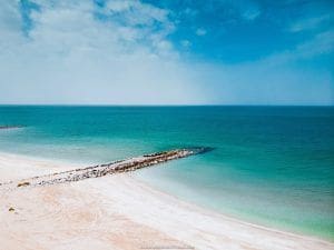 Der 1,6 km lange Al Rams Beach und die Insel Saraya sind perfekt für alle, die die Einsamkeit und die Natur lieben. Manchmal entsteht durch die Verdunstung des Wassers an der Küste ein Sabkha, der durch die Farbe der Algen wie ein rosa See aussieht.
