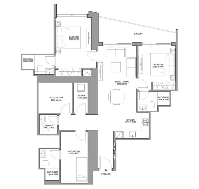 Mit Größen von 52 bis 1.144 m² bieten diese durchdacht entworfenen Wohnungen Balkone; die meisten verfügen über Hauswirtschaftsräume. In ausgewählten 2-Zimmer-Grundrissen sorgen Dienstmädchenzimmer und vielseitige Arbeitszimmer für zusätzlichen Komfort.