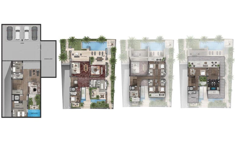 Jede Residenz erstreckt sich über vier eindrucksvolle Etagen und vereint mühelos Luxus und Funktionalität. Exklusive Highlights wie eine private Garage, ein beruhigender Zen-Innenhof mit sanftem Wasserspiel und ein eleganter Loungebereich schaffen den idealen Rahmen für erholsame Momente. Im Außenbereich laden ein glitzernder Swimmingpool und eine sonnige Lounge zum Entspannen ein, während der großzügige Ankleideraum im Inneren den Alltag in ein luxuriöses Vergnügen verwandelt. BO MONDE bietet ein unvergleichliches Wohnerlebnis, das Natur und Eleganz in perfekter Balance vereint.