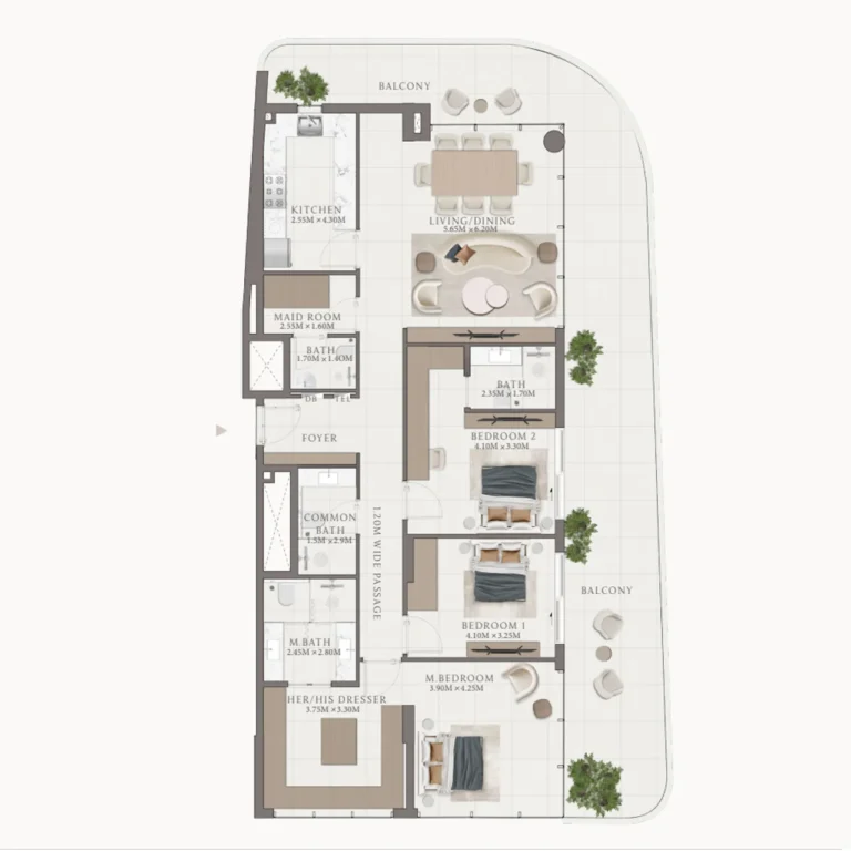Die 1-, 2- und 3-Schlafzimmer-Apartments überzeugen durch intelligente Grundrisse, lichtdurchflutete Räume und exklusive Rooftop-Retreats. Mit Wohnflächen von ca. 59 bis 286 m² bietet das Projekt großzügige Vielfalt für unterschiedliche Bedürfnisse. Dank direkter Anbindung an wichtige Verkehrsknotenpunkte, internationale Flughäfen, Dubai Marina, The Outlet Village und die Dubai Hills Mall garantiert Bellagio einen urbanen Lifestyle, der Arbeit, Wellness und Freizeit perfekt vereint.