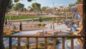 Das Leben in Al Deem geht weit über die eigenen vier Wände hinaus. Gemeinschaftsfarmen, ein Reiterhof, ein Kunstmarkt und Grünflächen schaffen Räume, in denen Begegnung, Kreativität und Zusammenhalt wachsen.