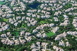 Al Barari is a green, luxurious gated community on Sheikh Mohammad Bin Zayed Road, planned as a European garden in the desert. 80% of the development is manicured gardens, ponds, streams and botanical areas, among which are 217 exclusive villas with private pools, terraces and landscaped areas.